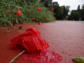 Keywords: flower road poppy nature rain solitude