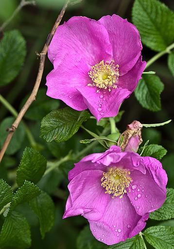 Keywords: flower rose wild rose nature macro rose petals stamens pink flowering summer meadow bush rose list pollen after the rain rain drops rose bush