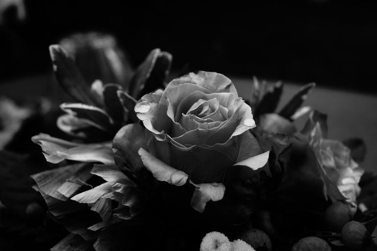 Keywords: flower rose withered gloomy romantic plant bouquet blossom bloom black white sw close