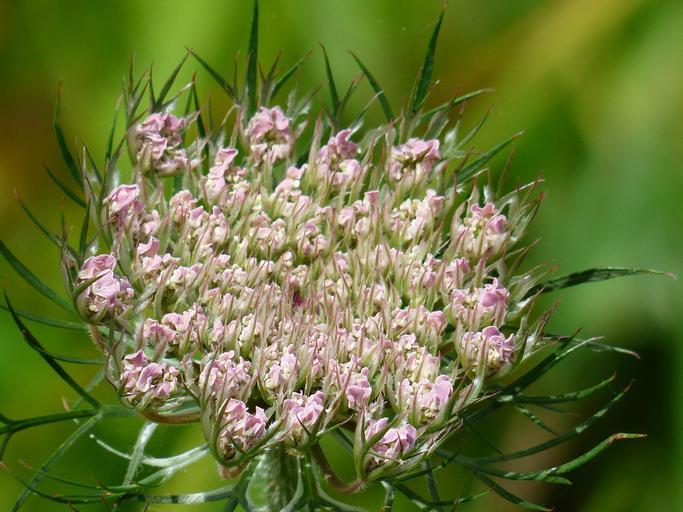 Keywords: flower umbel blossom bloom pink white wild carrot daucus carota umbelliferae apiaceae garden plant wild flower macro close back light garden spring wild plant pointed flower summer flowering