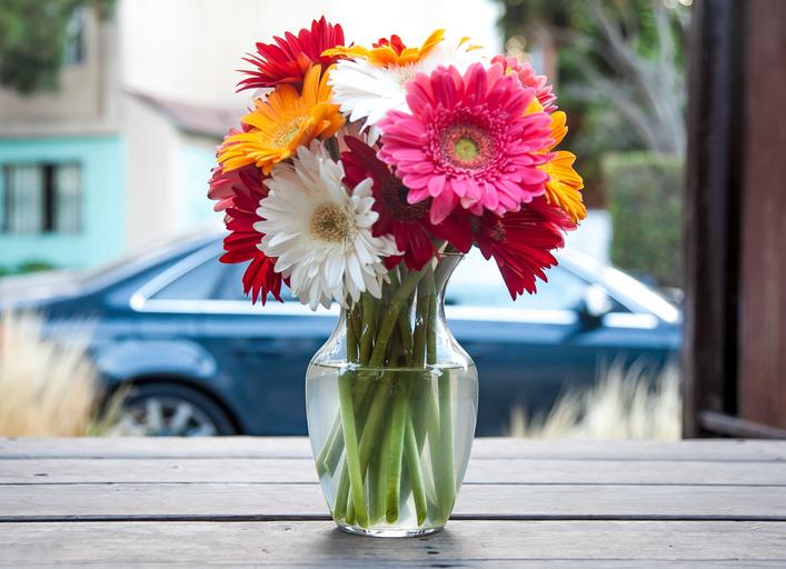 Keywords: flower vase vase flowers decoration window bench sill interior colors beautiful floral blossom flora pink white red blooming fresh Flower Bouquet-2.jpg en Colorful Gerbera Daisies es Margaritas de colores fr Colorful Gerbera Marguerites 2014-07-15 own David Condrey other versions 33 991711 -118 465221 heading 630 https //pixabay com/en/flower-vase-vase-flowers-decoration-393423/ cc-zero Flower bouquets Colors in nature Depth of field Glass vases Plants in jars Unidentified Gerbera |