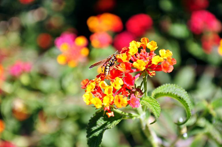 Keywords: flower wasp bee insects yellow flower flowers garden sunny day