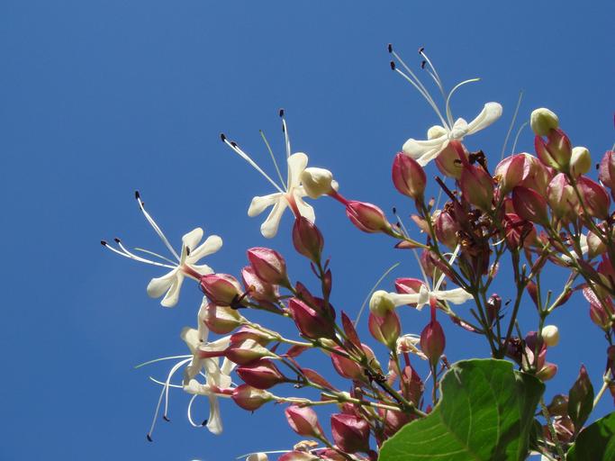 Keywords: flower white garden tree plants summer blue sky nature flowers branches macro stamen pink white flowers pedals