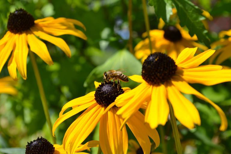 Keywords: flower yellow nature garden flowers bed yellow green plant garden plant bee green