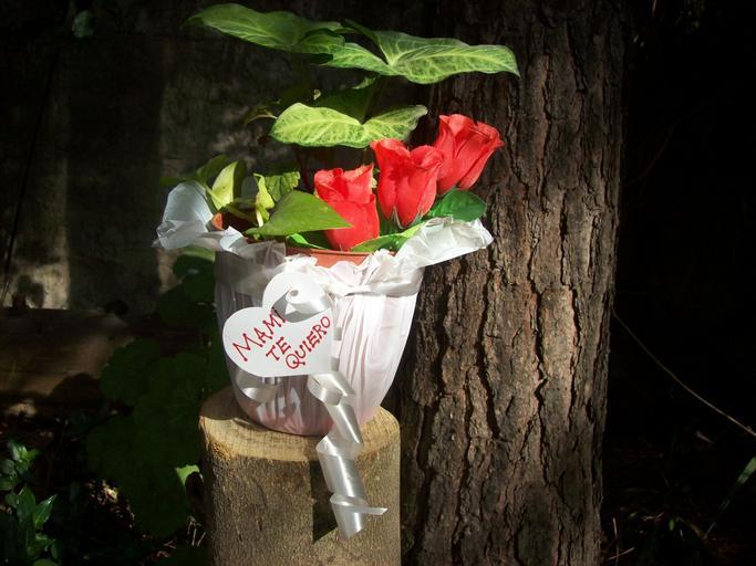 Keywords: flowerpot gift mother's day roses red trunk i love you i love you mom red rose garden bouquet warmth beautiful nature flowers plants