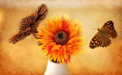 Keywords: flowers artificial flowers orange deco decorative decoration butterfly painting digital painting greeting card
