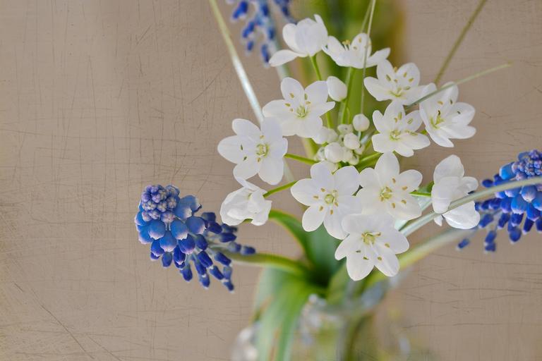 Keywords: flowers bouquet spring spring flowers hyacinth blue leek flower white close