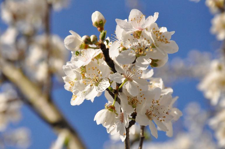 Keywords: flowers cherry plum flowering tree nature white sky cherry blossom spring fruit tree cherry blossoms white flowers blue background white flower