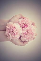 Keywords: flowers cloves pink pink flowers from above cut flowers hand held protected keep hands in the hand vintage-look close