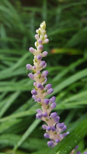 Keywords: flowers flower spikes big blue lilyturf lilyturf big blue purple flowers ground cover foliage wet water droplets rain raining plants garden botany botanic liriope muscari