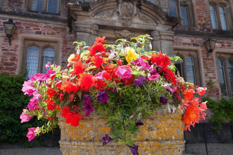 Keywords: flowers flowerpot summer flowers colorful lush decorative red yellow violet decoration nature