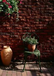 Flowers-in-pot-on-chair-on-bricks-background.jpg (2094x2950)