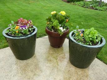 Keywords: flowers pots patio potted containers garden plant plants container decoration decorative pottery three yard yard decoration
