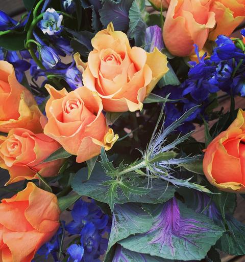 Keywords: flowers roses cabbage green fresh blossom bright romance violet salmon alive