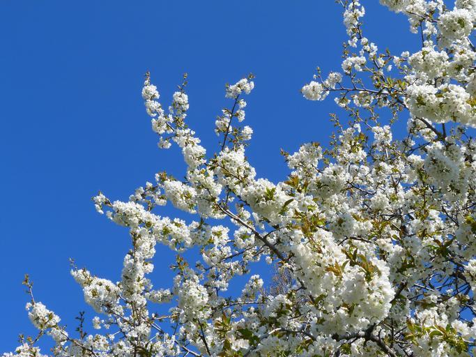 Keywords: flowers tree fruit tree white spring garden nature flowering cherry light branch sky blue joy