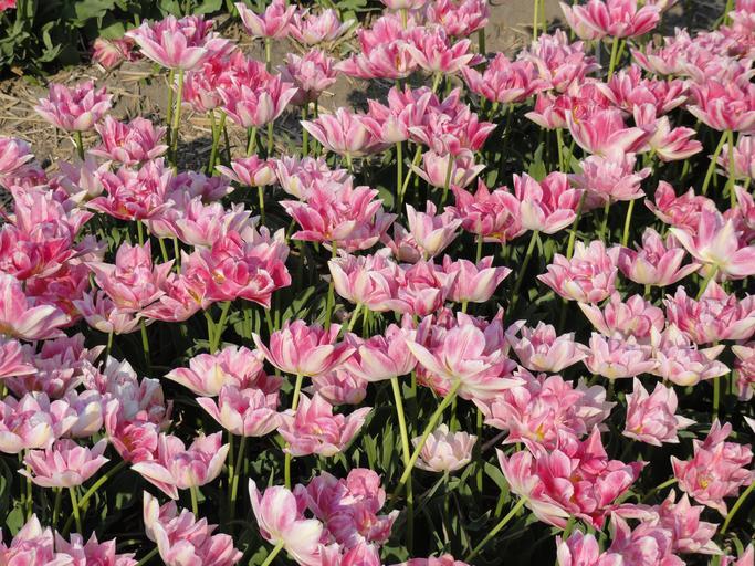 Keywords: flowers tulips netherlands field spring bloom blossom plants pink colorful floral petal season bulbs