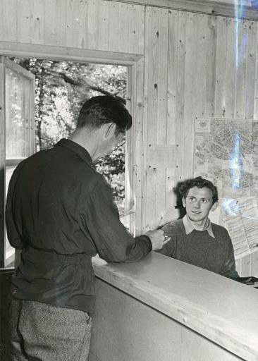 | Keywords: people Blant de 17 leire rundt om i Sverige hvor noen tusen norske flyktninger utdannes til ordinært politi og reservepoliti er også leiren Thoresta i nærheten av Stockholm. Utdannelsen her er ikke så omfattende som ved de andre leire og av mer tilfeldig art, da leiren samtidig tjener som oppsamlingsleir for de nordmenn som skal videre til Storbritannia. Ventetiden brukes til teoretisk undervisning av forskjellig art.bildet viser en nyankommen til leiren, som registreres på leirens kontor. Bildet er tatt i det han overrekker sine rasjoneringskort, som deponeres i leiren så lenge han befinner seg der. Stockholm 7.10.44 In accordance with an agreement reached in June, 1943, between the Norwegian and Swedish Governments, a small number of Norwegians were trained as policemen in Sweden. As, however, the Norwegian Police Force in occupied Norway has been considerably reduced and partly Nazified, it has become imperative that Norwegians abroad should train a strong police force, in order to keep law and order during the liberation of Norway. In consequence, 1,500 Norwegians started an extensive training in 3 different camps in Gottröra in Uppland. Later on, more Norwegians were called in and today, 9,500 men are being trained as police in 17 different camps. The training is carried out under Swedish control and partly by Swedish instructors. In some of the camps, training in the use of weapons is being allowed and weapons have been supplied from Swedish stores. Picture shows a new recruit arriving at the camp at Thoresta.  RA/PA-1209/Uc/67/3/S 5218 Blant de 17 leire rundt om i Sverige hvor noen tusen norske flyktninger utdannes til ordinært politi og reservepoliti er også leiren Thoresta i nærheten av Stockholm. Utdannelsen her er ikke så omfattende som ved de andre leire og av mer tilfeldig art, da leiren samtidig tjener som oppsamlingsleir for de nordmenn som skal videre til Storbritannia. Ventetiden brukes til teoretisk undervisning av forskjellig art.bildet viser en nyankommen til leiren, som registreres på leirens kontor. Bildet er tatt i det han overrekker sine rasjoneringskort, som deponeres i leiren så lenge han befinner seg der. Stockholm 7.10.44 In accordance with an agreement reached in June, 1943, between the Norwegian and Swedish Governments, a small number of Norwegians were trained as policemen in Sweden. As, however, the Norwegian Police Force in occupied Norway has been considerably reduced and partly Nazified, it has become imperative that Norwegians abroad should train a strong police force, in order to keep law and order during the liberation of Norway. In consequence, 1,500 Norwegians started an extensive training in 3 different camps in Gottröra in Uppland. Later on, more Norwegians were called in and today, 9,500 men are being trained as police in 17 different camps. The training is carried out under Swedish control and partly by Swedish instructors. In some of the camps, training in the use of weapons is being allowed and weapons have been supplied from Swedish stores. Picture shows a new recruit arriving at the camp at Thoresta.  RA/PA-1209/Uc/67/3/S 5218 |