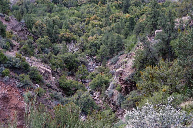 Keywords: arizona coconino national forest coconinonationalforest flume trail flumetrail forest service forestservice fossil creek fossilcreek fossil springs fossilsprings fossil springs wilderness fossilspringswilderness national forest nationalforest red rock ranger district redrockrangerdistrict tonto national forest tontonationalforest backpacking building canyon desert forest hiking historic outdoors spring springtime structure trail wilderness camp verde campverde united states unitedstates outdoor Many old structures are left from the days the flume ran through the canyon diverting Fossil Creek's water to the Irving power plant. The Flume Trail starts at the old Irving Power Plant location and follows the line of the now-removed flume that carried the water from the dam to the power plants for generating electricity. The trail ends at the old Fossil Creek Dam, a four and a half mile trek one way. The trail ascends steadily about 500 feet from an elevation of 3769 foot at the trailhead over the first mile. For the next three and a half miles, the trail rolls gently several times in approximately 150 foot elevation changes before arriving at the dam. The trail is approximately 500 feet up the side of the canyon, offering fantastic views of the canyon and creek below. There is no creek acccess between the trailhead and the dam. The trail is very exposed and extremely hot in the warmer months. Hikers should carry at least four quarts of water. The trail is in the Fossil Creek Wilderness. Bikes and mechanized vehicles are prohibited. Camping is prohibited along Flume Trail, from the Fossil Creek Dam for several miles downstream (west) along the canyon. Flume Trail meets Fossil Springs Trail at the old dam. Continue another half mile through a narrow section of the canyon to find easy camping near the creek in the springs area. Camping is permitted during the fall-winter season 100 feet or more from the creek. A half mile from the dam is a marked side trail leading to the first spring source, where many hikers choose to refill their water bottles. Fossil Creek is one of two Wild and Scenic rivers in Arizona. A series of springs gush 20,000 gallons a minute year-round at the bottom of a 1,600 foot deep canyon, creating a lush riparian oasis rich with life. Over the years these calcium laden waters have laid down huge deposits of a type of limestone called travertine, creating deep pools for miles along the creek. The Wilderness and surrounding area are on the Tonto and Coconino National Forests, and are managed by the Coconino National Forest. During the spring-summer season, camping is prohibited anywhere in the Wilderness and surrounding area, and a reserved parking permit is required to park at the Flume trailhead at the Irving parking lot. See Flume Trail and Fossil Creek on the USFS Coconino National Forest website Photo by Deborah Lee Soltesz, March 11, 2016. Source: USFS Coconino National Forest. Many old structures are left from the days the flume ran through the canyon diverting Fossil Creek's water to the Irving power plant. The Flume Trail starts at the old Irving Power Plant location and follows the line of the now-removed flume that carried the water from the dam to the power plants for generating electricity. The trail ends at the old Fossil Creek Dam, a four and a half mile trek one way. The trail ascends steadily about 500 feet from an elevation of 3769 foot at the trailhead over the first mile. For the next three and a half miles, the trail rolls gently several times in approximately 150 foot elevation changes before arriving at the dam. The trail is approximately 500 feet up the side of the canyon, offering fantastic views of the canyon and creek below. There is no creek acccess between the trailhead and the dam. The trail is very exposed and extremely hot in the warmer months. Hikers should carry at least four quarts of water. The trail is in the Fossil Creek Wilderness. Bikes and mechanized vehicles are prohibited. Camping is prohibited along Flume Trail, from the Fossil Creek Dam for several miles downstream (west) along the canyon. Flume Trail meets Fossil Springs Trail at the old dam. Continue another half mile through a narrow section of the canyon to find easy camping near the creek in the springs area. Camping is permitted during the fall-winter season 100 feet or more from the creek. A half mile from the dam is a marked side trail leading to the first spring source, where many hikers choose to refill their water bottles. Fossil Creek is one of two Wild and Scenic rivers in Arizona. A series of springs gush 20,000 gallons a minute year-round at the bottom of a 1,600 foot deep canyon, creating a lush riparian oasis rich with life. Over the years these calcium laden waters have laid down huge deposits of a type of limestone called travertine, creating deep pools for miles along the creek. The Wilderness and surrounding area are on the Tonto and Coconino National Forests, and are managed by the Coconino National Forest. During the spring-summer season, camping is prohibited anywhere in the Wilderness and surrounding area, and a reserved parking permit is required to park at the Flume trailhead at the Irving parking lot. See Flume Trail and Fossil Creek on the USFS Coconino National Forest website Photo by Deborah Lee Soltesz, March 11, 2016. Source: USFS Coconino National Forest.