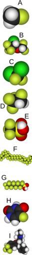 | Keywords: Fluorocarbon-montage.svg Some important organofluorine compounds <br/> <small> A Fluoromethane<br/> B Isoflurane<br/> C a CFC<br/> D an HFC<br/> E Triflic acid<br/> F Teflon<br/> G PFOS<br/> H Fluorouracil<br/> I Prozac<br/> </small> Einige bekannte Fluorocarbone <br/><small> A Methylfluorid<br/> B Isofluran<br/> C Freon-12<br/> D Tetrafluorethan<br/> E Triflat<br/> F PTFE<br/> G PFOS<br/> H 5-Fluorouracil<br/> I Fluoxetin/Fluctin<br/> </small> Fluorocarbon-montage png 50 2013-03-12 21 30 UTC Fluorocarbon-montage png Ben Mills derivative work Malyszkz Zwektoryzowano Krzysztof ZajÄ…czkowski malyszkz Fluorocarbon-montage png Categories Molecules</nowiki> Uploaded with derivativeFX Organofluorides Space-filling models |