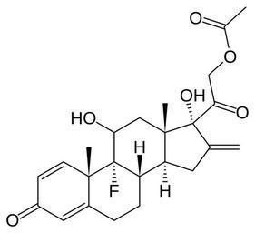 Keywords: Fluprednidene acetate.svg Skeletal formula of fluprednidene acetate Created using http //www acdlabs com/download/chemsk html ACD/ChemSketch 10 0 and Inkscape Own 2007-07-01 Fvasconcellos 00 43 2 July 2007 UTC Corticosteroids Acetate esters |
