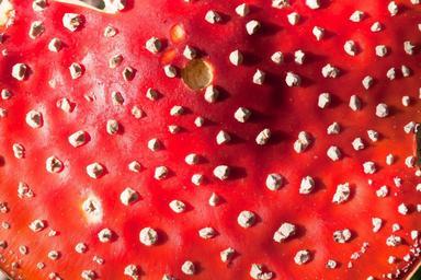 Keywords: fly agaric amanita muscaria mushroom hat red signal red flake white velum flakes autumn nature forest toxic macro detail screen fund background
