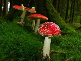 Keywords: fly agaric mushroom mushrooms red fly agaric mushroom toxic spotted autumn forest nature red moss