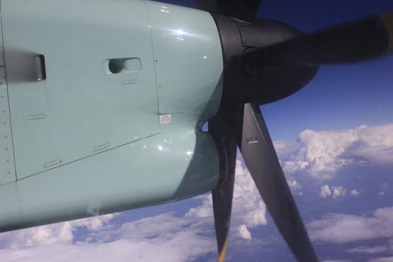 Keywords: fly aircraft propeller the propeller flight clouds landscape the propeller blade the air stationary