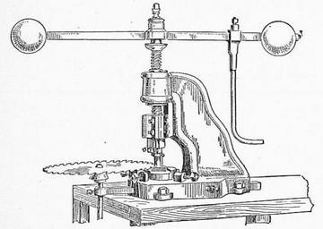 Keywords: Fly press (Carpentry and Joinery, 1925).jpg Fly press here being used to adjust set in saw blade teeth during sharpening or 'saw doctoring' Original caption Fig 22 ”Fly-Press for Punching and Gulleting Saw-blades Press tools Fly presses Saw sets |