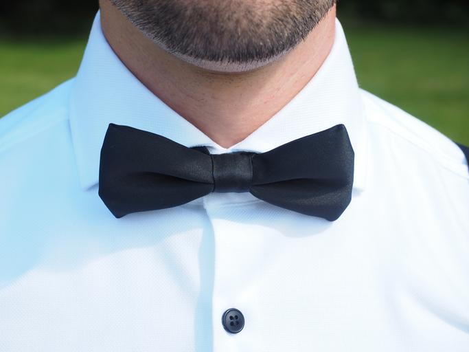 Keywords: fly suit groom loop collar clothing accessory chic noble elegant festive black tuxedo man lapel shirt detail section shirt button