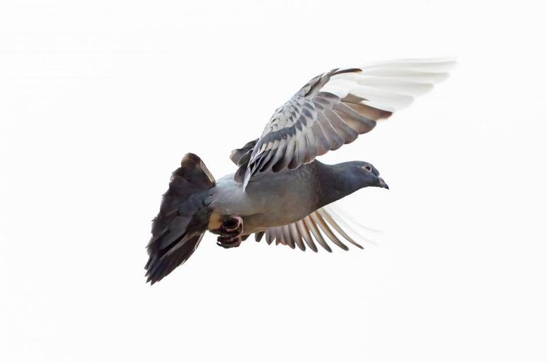 Keywords: pigeon dove wing animal isolated fly bird white feather one black gray motion single flight