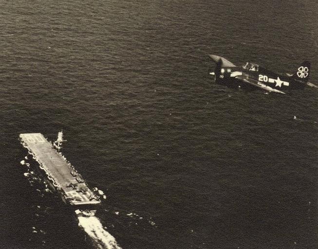 Keywords: FM-2 VC-93 Petrof Bay 1945.jpg A U S Navy Grumman FM-2 Wildcat fighter of composite squadron VC-93 flying over its parent carrier the escort carrier USS Petrof Bay CVE-80 in 1945 VC-93 operated from the Petrof Bay between 10 March and 30 May 1945 in support of the invasion of Okinawa Official U S Navy photograph on navsource org http //www navsource org/archives/03/0308005 jpg 1945 Photographer Robert M Cieri PD-USGov-Military-Navy General Motors FM-2 Wildcat USS Petrof Bay CVE-80 |