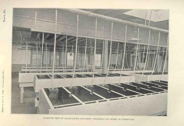 Keywords: FMIB 33327 Gloucester Hatchery; Interior View.jpeg check categories 15 August 2015 3 Gloucester Hatchery; Interior View Showing Cod Boxes in Operation Subject Fish hatcheries Geographic Subject United States--Massachusetts--Gloucester Tag Hatcheries 1897/1898 Cite book Report on the Propagation and Distribution of Food-Fishes Ravenel William de Chastignier b Washington DC Government Printing Office 1899 Report of the Commissioner United States Commission of Fish and Fisheries 1897/1898 Plate XII Creator William de Chastignier Ravenel PD-UWASH-FMIB Institution University of Washington FMIB-source accession number 33327 Images from the Freshwater and Marine Image Bank to check Fish hatcheries William de Chastignier Ravenel Gloucester Massachusetts |