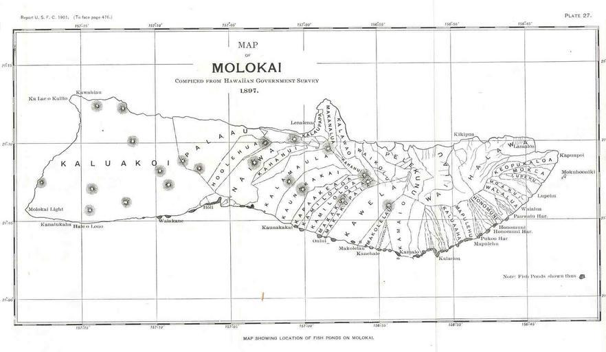 Keywords: FMIB 33820 Map of Molokai.jpeg check categories 17 August 2015 3 Map of Molokai Map Showing Location of Fish Ponds on Molokai Subject Fish Ponds--Molokai Hawaii Molokai Hawaii Geographic Subject United States--Hawaii--Molokai Tag Traditional Fisheries 1900-1901 Cite book Commercial Fisheries of the Hawaiian Islands Cobb John N John Nathan Washington DC Government Printing Office 1904 Report of the Commissioner United States Commission of Fish and Fisheries 1900-1901 Plate 27 Creator John Nathan Cobb PD-UWASH-FMIB Institution University of Washington FMIB-source accession number 33820 Images from the Freshwater and Marine Image Bank to check Photographs by John Nathan Cobb Molokaʻi Fisheries |