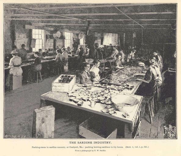 | Keywords: FMIB 35838 Sardine Industry.jpeg  check categories 3 September 2015 4 Sardine Industry Packing-room in sardine cannery at Eastport Me packing herring-sardines in tin boxes Subject Sardine fisheries Canneries Women fish trade workers Fishery processing Geographic Subject United States--Maine--Eastport Tag Commercial Fisheries 1887 Cite book Fisheries and Fishery Industries of the United States Section V History and Methods of the Fisheries v 2 Goode George Brown Washington DC Government Printing Office 1887 Plate 143 Creator Thomas William Smillie PD-UWASH-FMIB Institution University of Washington FMIB-source accession number 35838 Images from the Freshwater and Marine Image Bank to check Thomas William Smillie Canneries Fisheries Eastport Maine |