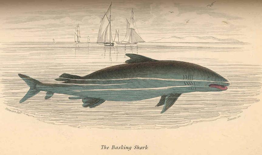Keywords: FMIB 36402 Basking Shark.jpeg Basking Shark Subject Basking shark Sharks Tag Fish 1866 Cite book British Fishes Part II Hamilton Robert London England Chatto and Windus 1866 Naturalist's Library vol 37 Facing page 326 Creator Robert Hamilton PD-UWASH-FMIB Institution University of Washington FMIB-source accession number 36402 Images from the Freshwater and Marine Image Bank to check Robert Hamilton Cetorhinus maximus |