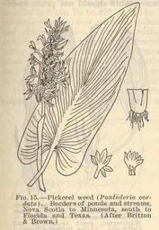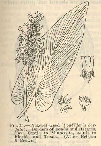 Keywords: FMIB 37600 Pickerel weed (Ponfederia cordata).jpeg check categories 16 August 2015 1 Pickerel weed Ponfederia cordata Borders of ponds and streams Nova Scotia to Minnesota south to Florida and Texas After Britton Brown Subject Pontederiacene Tag Aquatic Botany 1924 Cite book Aquatic Plants in Pond Culture Titcomb John W Washington DC Government Printing Office 1924 Report of the United States Commissioner of Fisheries for the Fiscal Year 1923 with Appendices Fig 15 Creator John Wheelock Titcomb PD-UWASH-FMIB Institution University of Washington FMIB-source accession number 37600 Images from the Freshwater and Marine Image Bank to check John Wheelock Titcomb |
