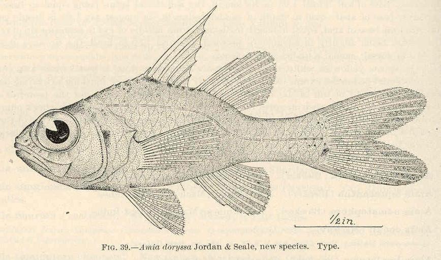 Keywords: FMIB 39621 Amia doryssa Jordan & Seale, new speices Type.jpeg Amia doryssa Jordan Seale new speices Type Subject Amia Tag Fish 1906 of the Species Found in the Archipelago with a Provisional Check-List of the Fishes of Oceania Jordan David Starr; Seale Alvin Washington DC Government Printing Office 1906 Bulletin of the Bureau of Fisheries v 25 1905 Fig 39 Creator David Starr Jordan Creator Alvin Seale PD-UWASH-FMIB Institution University of Washington FMIB-source accession number 39621 Images from the Freshwater and Marine Image Bank to check David Starr Jordan Alvin Seale Apogon doryssa |