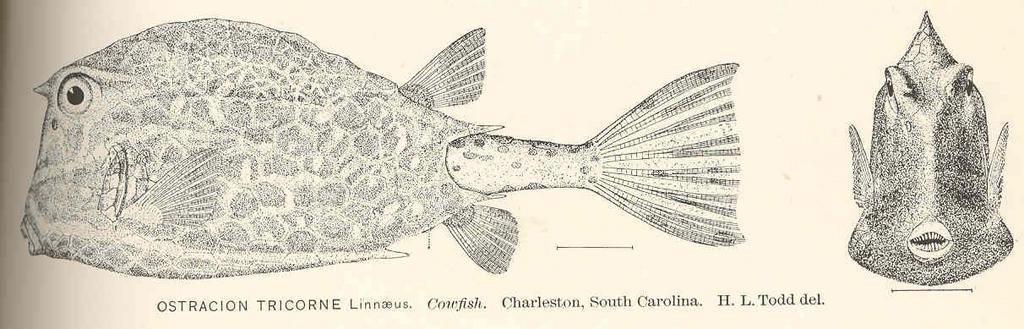 Keywords: FMIB 40098 Ostracion tricorne Linnaeus Cowfish Charleston, South Carolina.jpeg check categories 15 September 2015 3 Ostracion tricorne Linnaeus Cowfish Charleston South Carolina Subject Ostracion Cowfishes Tag Fish 1894 Cite book Fishes of Texas and the Rio Grande Basin Considered Chiefly with Reference to Their Geographic Distribution Evermann Barton W ; Kendall William C Washington DC Government Printing Office 1894 Bulletin of the United States Fish Commission vol 12 1892 Plate XLIX-1 Creator Barton Warren Evermann Creator William Converse Kendall PD-UWASH-FMIB Institution University of Washington FMIB-source accession number 40098 Images from the Freshwater and Marine Image Bank to check Barton Warren Evermann Drawings of fish by William Converse Kendall Ostracion |