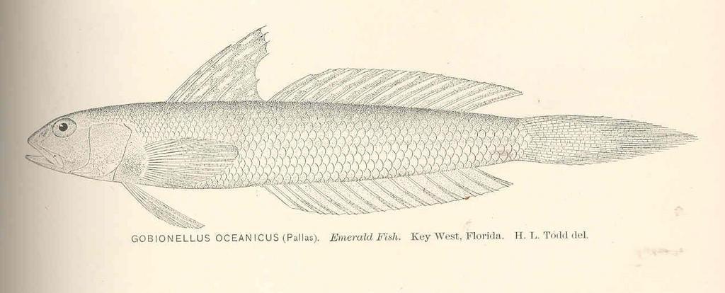 | Keywords: FMIB 40104 Gobionellus oceanicus (Pallas) Emerald Fish Key West Florida.jpeg check categories 15 September 2015 3 Gobionellus oceanicus Pallas Emerald Fish Key West Florida Subject Gobiidae Gobionellus Tag Fish 1894 Cite book Fishes of Texas and the Rio Grande Basin Considered Chiefly with Reference to Their Geographic Distribution Evermann Barton W ; Kendall William C Washington DC Government Printing Office 1894 Bulletin of the United States Fish Commission vol 12 1892 Plate XLV-b Creator Barton Warren Evermann Creator William Converse Kendall PD-UWASH-FMIB Institution University of Washington FMIB-source accession number 40104 Images from the Freshwater and Marine Image Bank to check Barton Warren Evermann Drawings of fish by William Converse Kendall Gobionellus |