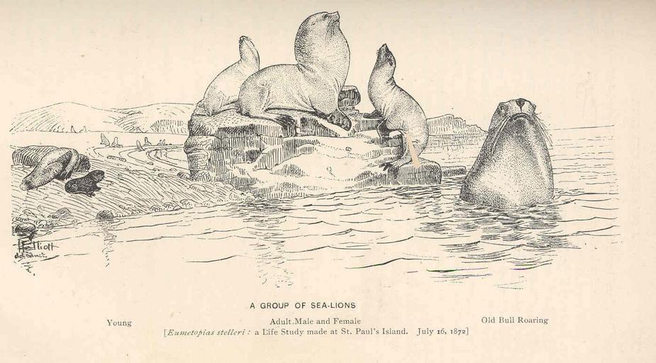 Keywords: FMIB 45379 Group of Sea-Lions.jpeg check categories 23 August 2015 2 Group of Sea-Lions Young -- Adult Male and Female -- Old Bull Roaring Eumetopias stelleri; a life study made at St Paul's Island July 16 1872 Subject Sea lions--Alaska Tag Aquatic Mammals 1872 Cite book Our Arctic Province Alaska and the Seal Islands Elliott Henry W New York City NY Charles Scribner's Sons 1897 Library of Contemporary Exploration and Adventure Facing page 354 Creator Henry Wood Elliott PD-UWASH-FMIB Institution University of Washington FMIB-source accession number 45379 Images from the Freshwater and Marine Image Bank to check Henry W Elliott Marine mammals |