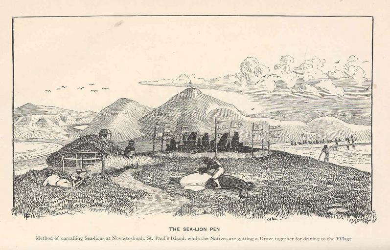 Keywords: FMIB 45382 Sea-Lion Pen.jpeg check categories 23 August 2015 3 Sea-Lion Pen Method of corralling Sea-lions at Novastoshnah St Paul's Island while the Natives are getting a drove together for driving to the Village Subject Sea lions--Alaska Saint Paul Island Alaska Sealers--Alaska Sealing--Alaska Geographic Subject United States--Alaska--Saint Pauls Island Tag Aquatic Mammals 1897 Cite book Our Arctic Province Alaska and the Seal Islands Elliott Henry W New York City NY Charles Scribner's Sons 1897 Library of Contemporary Exploration and Adventure Facing page 365 Creator Henry Wood Elliott PD-UWASH-FMIB Institution University of Washington FMIB-source accession number 45382 Images from the Freshwater and Marine Image Bank to check Henry W Elliott Saint Paul Island Alaska Marine mammals |