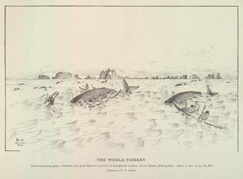 Keywords: FMIB 45986 Whale Fishery.jpeg check categories 14 September 2015 3 Whale Fishery Aleuts planting glass obsidian and jade darts in a school of humpback whales Akoon Island Bering Sea Subject Whaling Whaleboats Akoon Island Alaska Geographic Subject United States--Alaska--Akoon Island Tag Aquatic Mammals 1887 Cite book Fisheries and Fishery Industries of the United States Goode George Brown Washington DC Government Printing Office 1887 Plate 202 Creator Henry Wood Elliott PD-UWASH-FMIB Institution University of Washington FMIB-source accession number 45986 Images from the Freshwater and Marine Image Bank to check Henry W Elliott Whaleboats Marine mammals |