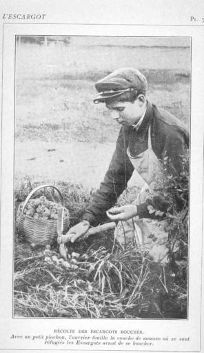 Keywords: FMIB 47206 Recolte des Escargots Bouches.jpeg check categories 16 September 2015 3 Recolte des Escargots Bouches Avec un petit piochon l'ouvrier fouille la coucne de mousse ou se sont refugies les Escargots avant de se boucher Subject Snail farming Tag Mollusks 1911 Cite book l'Escargot Elevage et Parcage Lucratifs preparation culinaire et vente Boisseau G ; Lanorville G Paris France Librairie Hachette 1911 Plate 7 Creator G Boisseau Creator Georges Lanorville PD-UWASH-FMIB Institution University of Washington FMIB-source accession number 47206 Images from the Freshwater and Marine Image Bank to check G Boisseau Georges Lanorville Mollusca |