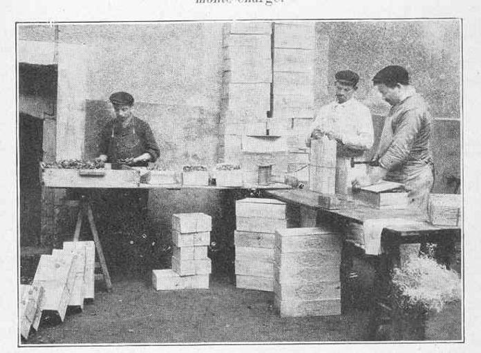 Keywords: FMIB 47231 Preparation des Expeditions.jpeg check categories 16 September 2015 3 Preparation des Expeditions Un ouvrier met les Escargots en caisse; aussitot pleines elles sont clouees entourees d'une ficelle rose dont les deux extremites sont attachees par un noeud puis enfin plombees Dans un angle est collee une etiquette que Subject Snails--Processing Snails--Packaging Tag Mollusks 1911 Cite book l'Escargot Elevage et Parcage Lucratifs preparation culinaire et vente Boisseau G ; Lanorville G Paris France Librairie Hachette 1911 Plate 24b Creator G Boisseau Creator Georges Lanorville PD-UWASH-FMIB Institution University of Washington FMIB-source accession number 47231 Images from the Freshwater and Marine Image Bank to check G Boisseau Georges Lanorville Mollusca |