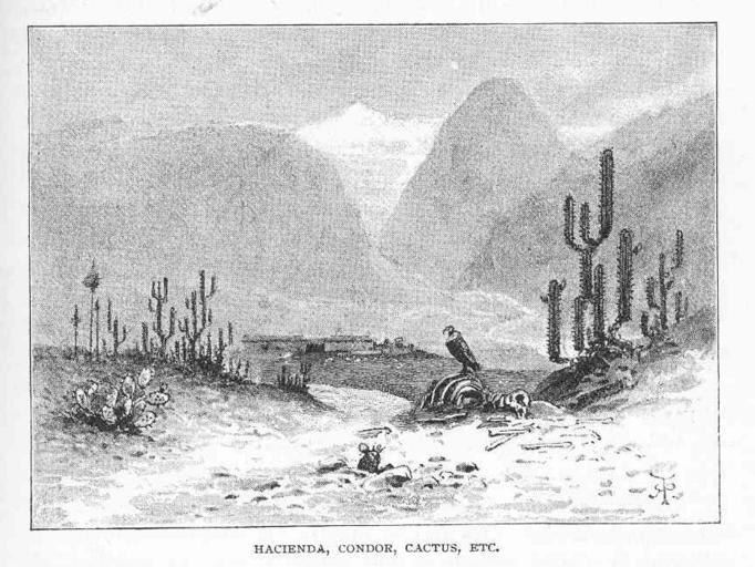 | Keywords: FMIB 47301 Hacienda, Condor, Cactus, Etc.jpeg check categories 21 August 2015 5 Hacienda Condor Cactus Etc Subject Haciendas Condors Cactus Geographic Subject Chile Tag Coasts 1890 Cite book Journal of Researches Into the Natural History and Geology of the Countries Visited During the Voyage Round the World of H M S 'Beagle' Under the Command of Captain Fitz Roy Darwin Charles New York City NY D Appleton and Company 1890 p 271 Creator Robert Taylor Pritchett PD-UWASH-FMIB Institution University of Washington FMIB-source accession number 47301 Images from the Freshwater and Marine Image Bank to check Robert Taylor Pritchett Haciendas Gymnogyps Cactus in art Historical images of Chile |