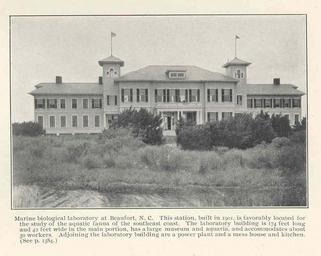 | Keywords: FMIB 47548 Marine Biological Laboratory at Beaufort, N C This station, built in 1901, is favorably located for the study of the aquatic.jpeg  check categories 19 August 2015 3 Marine Biological Laboratory at Beaufort N C This station built in 1901 is favorably located for the study of the aquatic fauna of the southeast coast The laboratory building is 174 feet long and 42 feet wide in the main portion has a large museum and aquaria and accommodates about 30 workers Adjoining the laboratory building are a power plant and a mess house and kitchen Subject Marine Biological Laboratory Beaufort North Carolina Marine laboratories Geographic Subject United States--North Carolina--Beaufort Tag Coasts 1910 00 Cite book United States Bureau of Fisheries its Establishment Functions Organization Resources Operations and Achievements Smith Hugh M Washington DC Government Printing Office 1910 Bulletin of the Bureau of Fisheries vol 28 1908 Part 2 Plate CL-2 Creator Hugh McCormick Smith PD-UWASH-FMIB Institution University of Washington FMIB-source accession number 47548 Images from the Freshwater and Marine Image Bank to check Hugh McCormick Smith Marine research laboratories and stations Beaufort North Carolina |