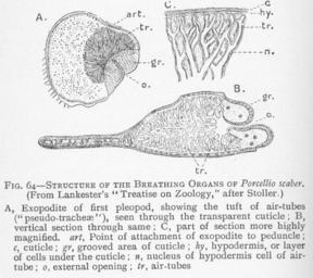 Keywords: FMIB 47699 Sturcture of the Breathing Organs of Porcellio scaber.jpeg check categories 21 August 2015 2 Sturcture of the Breathing Organs of Porcellio scaber A Exopodite of first pleopod showing the tuft of air-tubes 'pseudo-tracheae' seen through the transparent cuticle; B vertical section through same; C part of section more highly magnified; art Point of attachment of exopodite to peduncle; c cuticle; gr grooved area of cuticle; hy hypodermis or layer of cells under the cuticle; n nucleus of hypodermis cell of air-tube; o external opening; tr air-tubes Subject Porcellio--Anatomy Tag Invertebrates 1911 00 Cite book Life of Crustacea Calman W T New York the MacMillan Company 1911 Fig 64 Creator William Thomas Calman PD-UWASH-FMIB Institution University of Washington FMIB-source accession number 47699 Images from the Freshwater and Marine Image Bank to check William Thomas Calman Invertebrates |