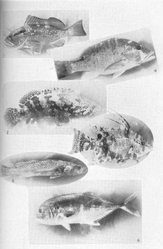 Keywords: FMIB 49428 Game Fishes of Florida.jpeg check categories 17 September 2015 5 Game Fishes of Florida 1 Red Grouper 2 Jew-fish 3 Sea-trout 4 Margate Fish Snapper 5 Hog-fish 6 Jack Cavalle Subject Red grouper Epinephelus itajara Sea trout Snapper Pigfish Bocaccio Tag Fish 1913 Cite book Game Fishes of the World Holder Charles Frederick London England Hodder and Stoughton 1913 Fig 35 Hunt PD-UWASH-FMIB Institution University of Washington FMIB-source accession number 49428 Images from the Freshwater and Marine Image Bank to check Epinephelus morio Epinephelus itajara Salvelinus fontinalis Orthopristis chrysoptera Sebastes paucispinis