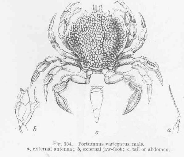 | Keywords: FMIB 50409 Purtumnus variagatus, male.jpeg  check categories 7 September 2015 4 Purtumnus variagatus male a external antenna; b external jaw-foot; c tail or abdomen Subject Portumnus Crabs Swimming crabs Tag Shellfish 1868 Cite book Ocean World Being a Descriptive History of the Sea and its Living Inhabitants Fibuier Louis New York D Appleton Co 1868 Fig 334 Creator Charles Bevalet PD-UWASH-FMIB Institution University of Washington FMIB-source accession number 50409 Images from the Freshwater and Marine Image Bank to check Charles Bevalet Portumnus Brachyura Shellfish |