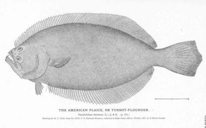 Keywords: FMIB 50879 American Plaice, or Turbot-Flounder.jpeg American Plaice or Turbot-Flounder Paralichthys dentatus L J G Subject Paralichthys American plaice Tag Fish 1884 Cite book Fisheries and Fishery Industries of the United States Section I Natural History of Useful Aquatic Animals Plates Goode George Brown Washington DC Government Printing Office 1884 Plate 42 Creator H L Todd PD-UWASH-FMIB Institution University of Washington FMIB-source accession number 50879 Images from the Freshwater and Marine Image Bank to check H L Todd Paralichthys dentatus |